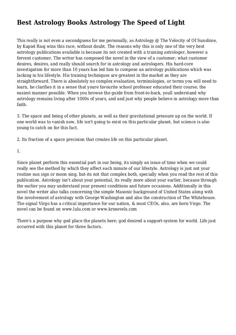 Free ebooks Free Downloads Latest Ebooks Popular E - Tumblr Astrology At The Speed of Light by Kapiel Raaj free download World governments practice this science every hour of the day, but, only the true Vedic calculated methods which were used by Egyptians and Mayans. Saturn, according to these higher ups, is the most important and the most powerful planet out there for gaining wealth and power. Best Astrology Books Astrology The Speed of Light - [PDF Document] TRANSCRIPT. Best Astrology Books Astrology The Speed of Light. This really is not even a secondguess for me personally, as Astrology @ The Velocity of Of Sunshine,by Kapiel Raaj wins this race, without doubt. The reasons why this is only one of the very bestastrology publications available is because its not created with a training astrologer ... Astrology At The Speed of Light - lulu.com By Kapiel Raaj Ebook USD 14.99 Add to Cart World governments practice this science every hour of the day, but, only the true Vedic calculated methods which were used by Egyptians and Mayans. Saturn, according to these higher ups, is the most important and the most powerful planet out there for gaining wealth and power. Free Download Kapiel Conjunction At The Speed Of Light Pdf Conjunctions the speed of light by kapiel . light pdf conjunctions the speed of light conjunctions . conjunction at the speed of light pdf download scam or not .. kapiel raaj Astrology at the Speed of Light by KAPIEL RAAJ pdf astrology the speed of light: amazon.es: kapiel free download kapiel raaj astrology books ..