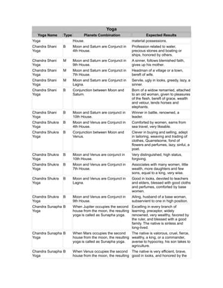 AstrologerPanditJi.com - Important Yogas in Vedic Astrology This section features articles explaining some of the most important yogas in Vedic Astrology and their good or bad effects in our lives. ... Gaj Kesari Yoga Chandra Mangal Yoga Vipreet Rajyoga ... Chatussagara Yoga Parvat Yoga Mahabhagya Yoga Lakshmi Yoga Vasumati Yoga Raj Lakshana Yoga Simhasana Yoga Amal Yoga Adhi Yoga Kahal Yoga Shankha ...
