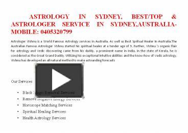 Famous Astrologer in Perth | Best Love Astrologer in Sydney Australia Contact us About us Chat on whatsapp +61 404 735 513 The Most famous Astrologer in Perth . Find your Love Astrologer located in Sydney, Canberra Australia the outstanding astrologer as well as the popular and renowned Astrologer. I've always lived a spiritual life.
