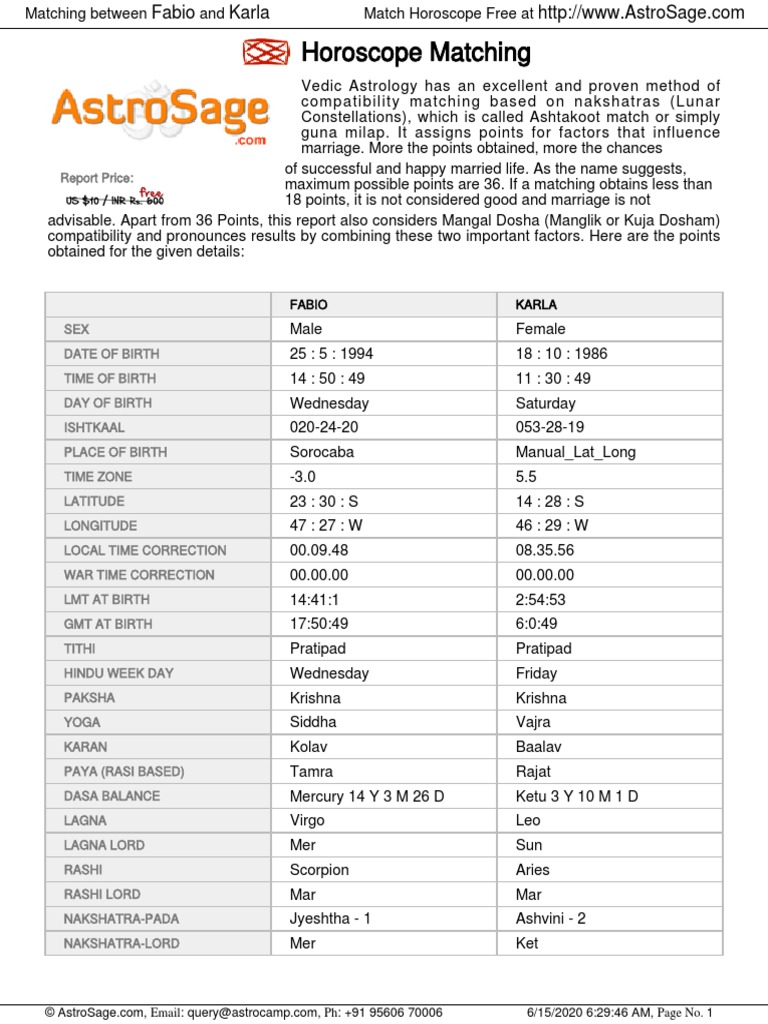 Horoscope Matching: Fabio Karla | PDF | Hindu Astrology ...