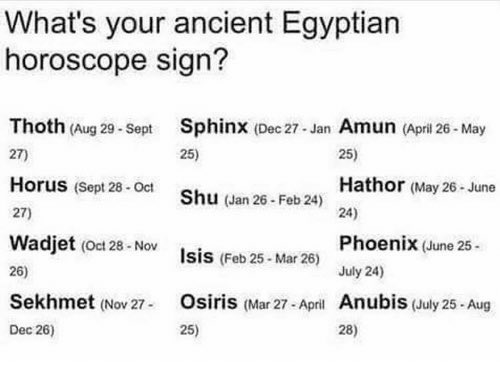 Ancient Egyptian Astrology: Find Your Zodiac Sign Ancient Egyptian Astrology: Find Your Zodiac Sign | by Charlotte Zobeir Ali | La Bibliothèque | Medium 500 Apologies, but something went wrong on our end. Refresh the page, check Medium...