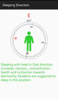 Best & Ideal Sleeping Direction As Per Vastu By Vastuconsultant.com As per Vastu, the sleeping direction east is a health-supporting direction. This is the position suggested for those hoping to overcome any health-related problems. This direction allows positive energy to flow through your entire body, making you sleep peacefully. Sleeping with head towards the West-Neutral direction to sleep as per Vastu Shastra